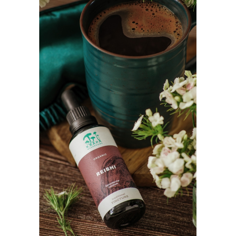 Reishi is a natural source of beta-glucans, triterpenes and other bioactive compounds that are associated with immune system support, vitality and balance of body and mind. Thanks to a two-phase extraction in water and alcohol, the resulting tincture is strong, pure and easily absorbed. Suitable for daily rituals - whether you are looking for long-term resistance or evening calm.