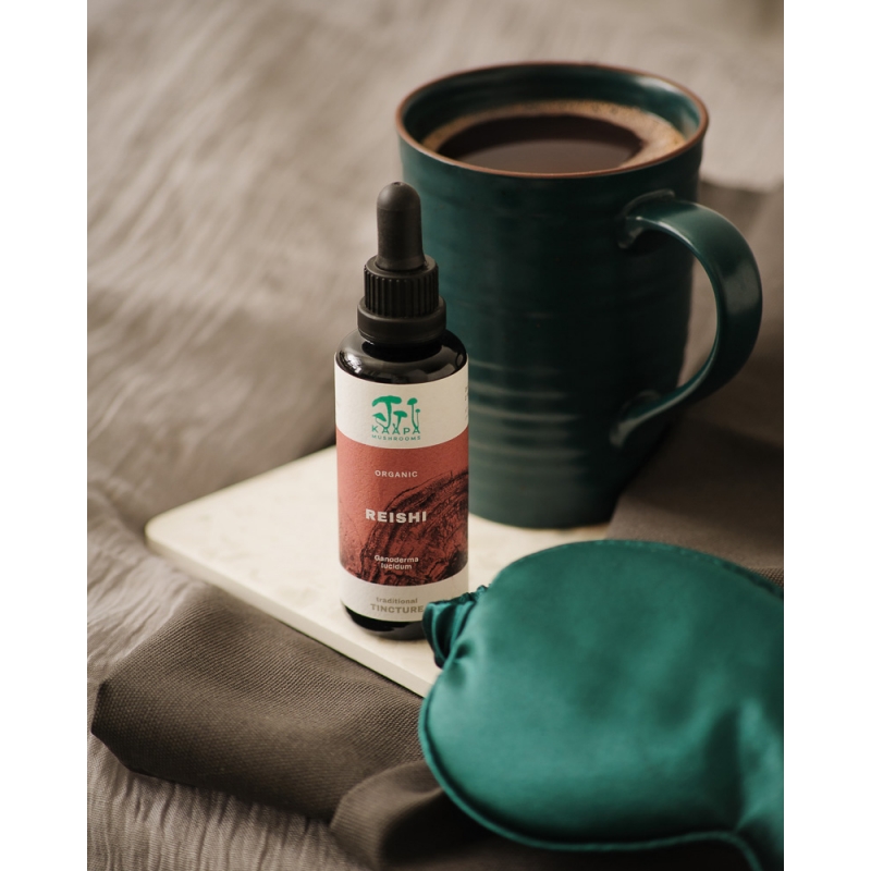 Reishi is a natural source of beta-glucans, triterpenes and other bioactive compounds that are associated with immune system support, vitality and balance of body and mind. Thanks to a two-phase extraction in water and alcohol, the resulting tincture is strong, pure and easily absorbed. Suitable for daily rituals - whether you are looking for long-term resistance or evening calm.