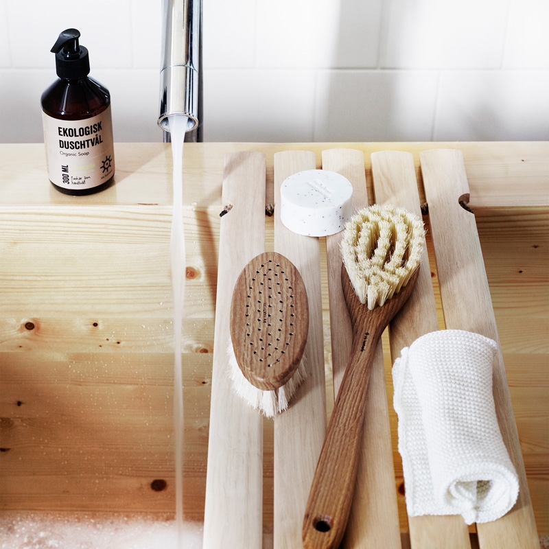 Iris Hantverk brushes will last you for years and do not require any special maintenance. If they get dirty, wash them in warm water with detergent and treat the wood with oil from time to time. After using them in the bath, stand the brush on its bristles and let it dry.