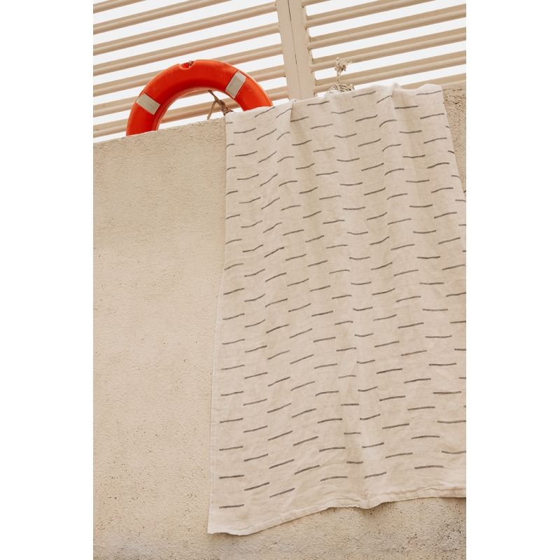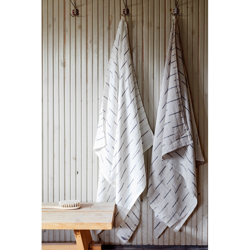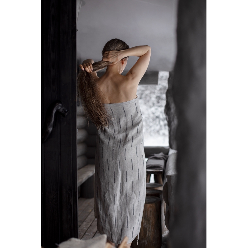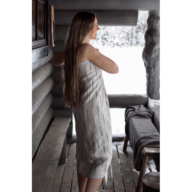 The Paussi towel is woven from 100% linen and features a Nordic minimalist pattern of fine stripes on a natural linen base. Linen dries quickly and is pleasant to the body. The large towel can also be used as a simple kilt by wrapping it around your waist in the sauna and will also serve as a great beach towel for the sea.