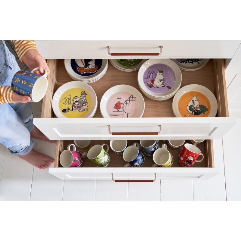 Finnish illustrator and writer Tove Jansson has prepared adventurous and educational stories about the Moomins for children all over the world, which accompany them throughout their lives. Her storybooks are full of unique drawings of characters from the magical valley, which became the basis for the iconic Arabia porcelain, Iittala glasses and Muurla enamel mugs. Moomin motifs, his family and friends can bring us joy every day, even when we are no longer children.