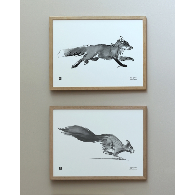Teemu Järvi is a Finnish artist who draws his main inspiration from the untamed Nordic nature. He spends most of the year in Finnish forests to capture the life and movement of his painting subjects as authentically as possible. He works with traditional drawing methods, such as painting with a reed stem and Chinese ink. At first glance, his seemingly simple paintings reveal a wealth of carefully thought-out strokes upon closer inspection.