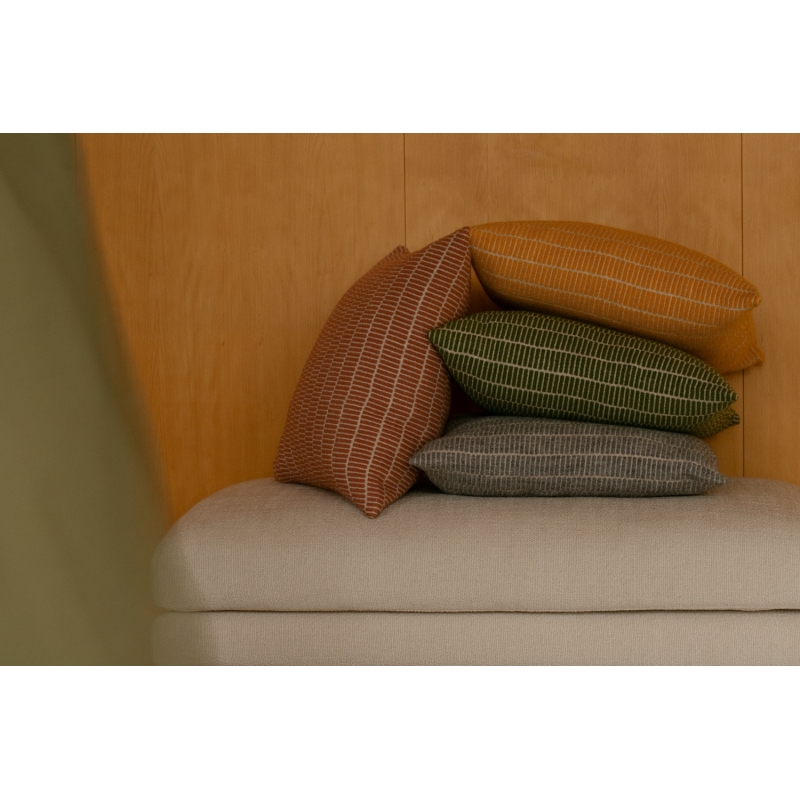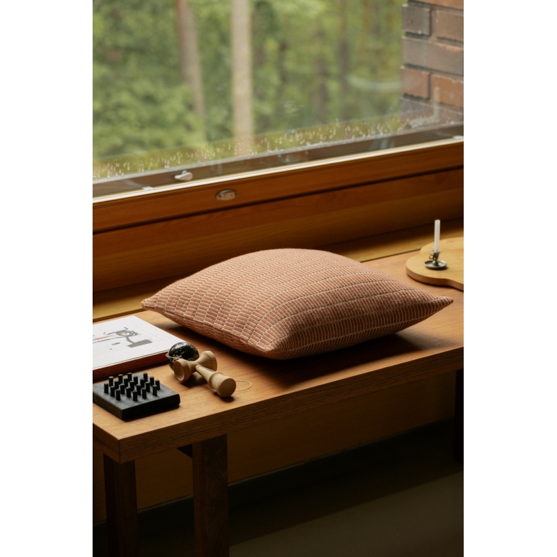 The Raitti wool pillowcase is woven in Finland from premium Finnish Finnsheep wool combined with certified New Zealand wool. The Raitti pattern is based on the so-called weft weave style known from traditional fabrics and carpets that designer Maija admires when she visits museums. Her goal was to create a modern version of this artisanal yet timeless motif.