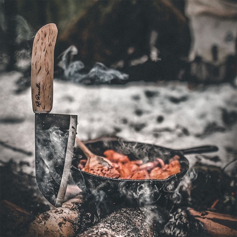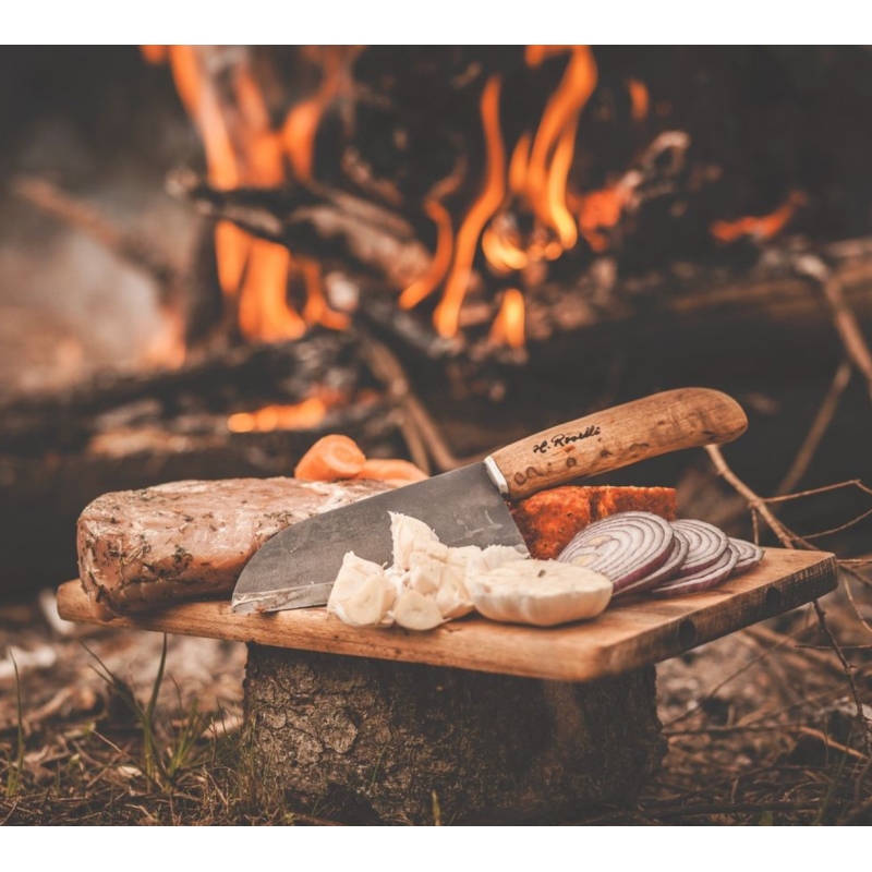 The knife is handmade exclusively from Finnish materials. The heat-treated birch handle treated with linseed oil holds well even when wet. The knife is an indispensable assistant for every enthusiastic cook and will also make a beautiful and useful gift.