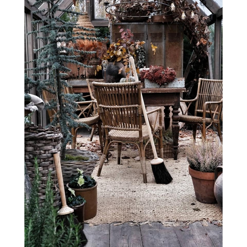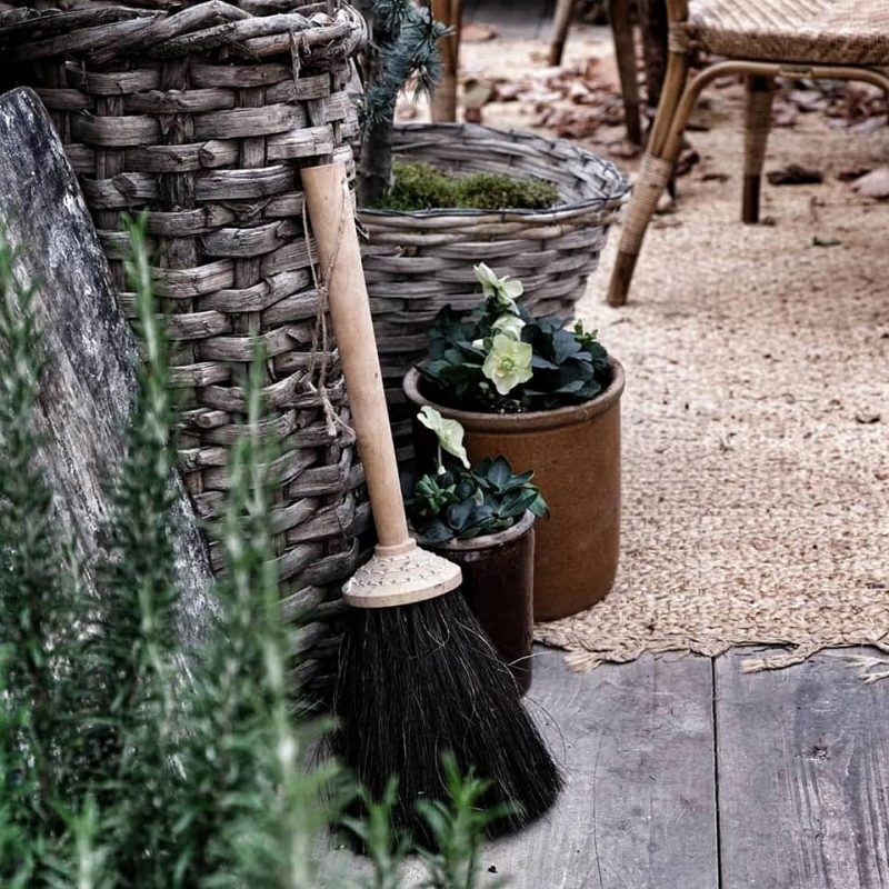 The practical round broom is a great helper for quick cleaning of the terrace, balcony or floor. The beautiful handmade workmanship from the Swedish workshop Iris Hantverk also makes it a stylish design piece that you don't have to hide. The broom handle is made of solid birch wood, and the brush hair is made of durable and strong natural arenga fiber.