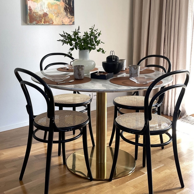 Elegant round placemat made from recycled leather adds a timeless look to your table while protecting it from stains and accidental impacts from dishes and glasses. Thanks to its shape, it’s perfectly suited for round dining tables, highlighting their form and style. It can also be used on its own – for example, as a decorative element in the center of the table under a vase or candle holder.