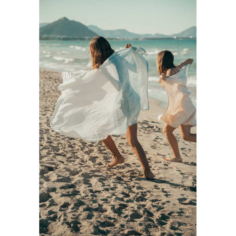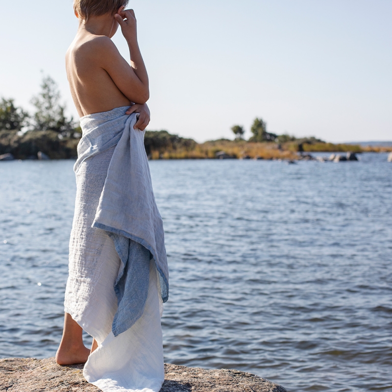 The Saari linen towel gradually changes from white to blue. This beautiful motif was designed for Lapuan Kankurit by Aoi Yoshizawa, a Japanese designer living in Finland. Linen dries quickly and is pleasant on the body. The large towel can also be used as a simple kilt by wrapping it around your waist in the sauna and is also great as a beach towel for the sea.