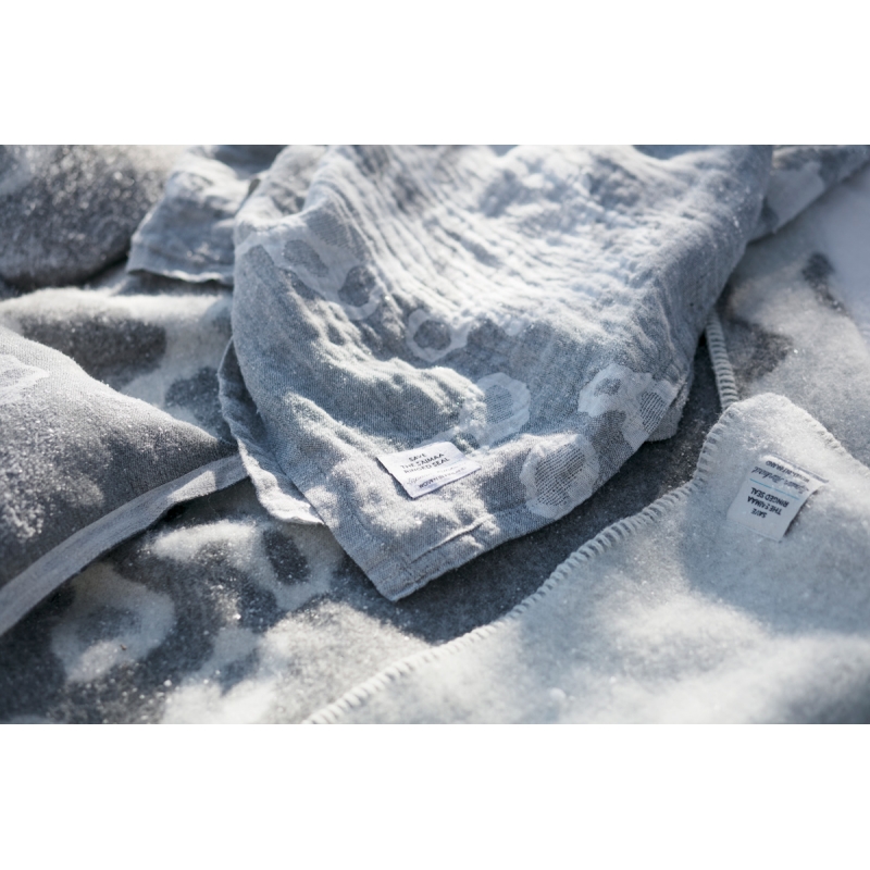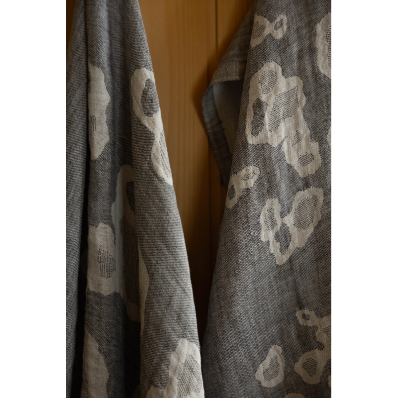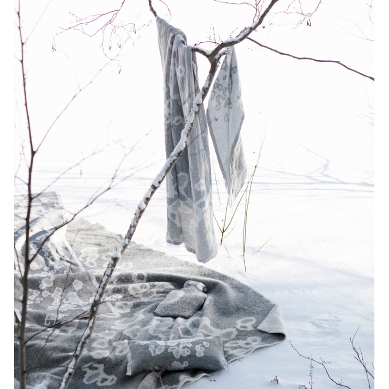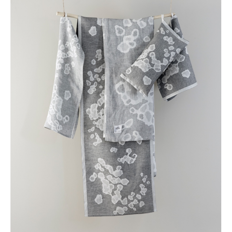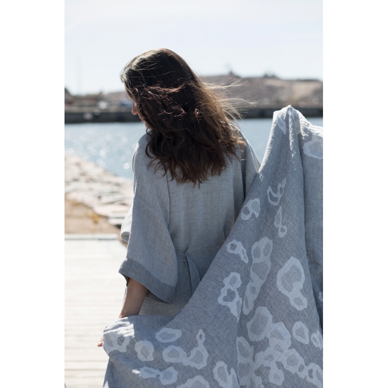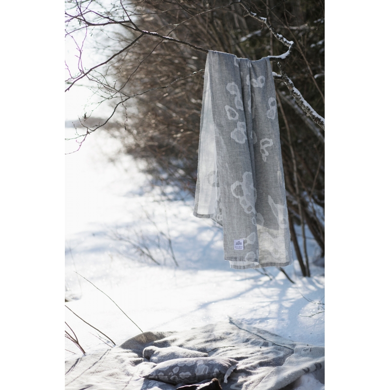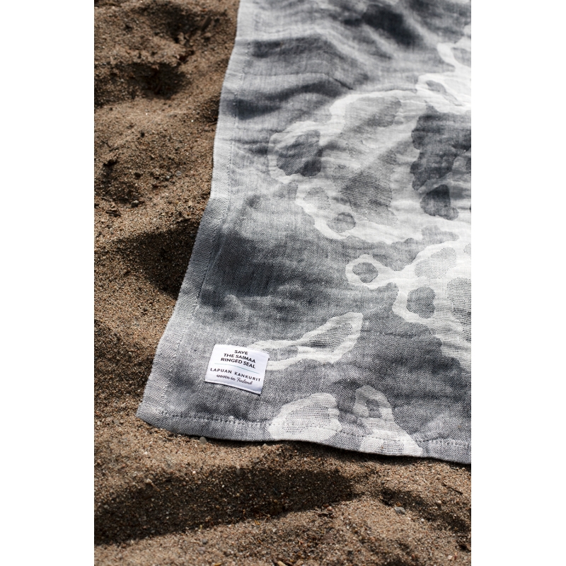 The towel is woven from 100% linen with a motif inspired by the fur of the ringed seal. Linen dries quickly and is pleasant to the body. The large towel can also be used as a simple kilt by wrapping it around your waist in the sauna and will also serve as a great beach towel for the sea.
