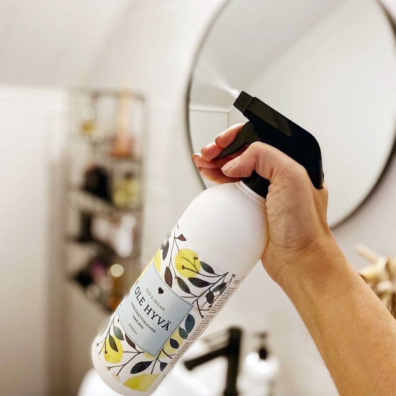Cleaning spray is made in Finland using renewable resources and without unnecessary environmental impact by the Ole Hyvä brand, which focuses on eco-friendly cosmetics and plant-based cleaning products.