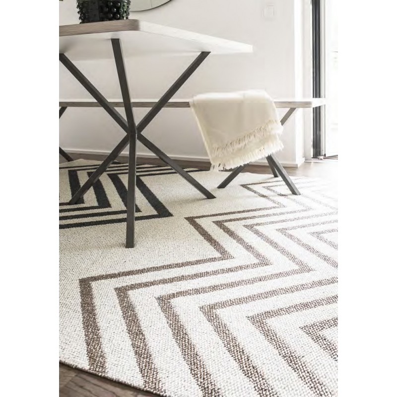 The hand-knitted Sapmi piece rug is decorated with a geometric Scandinavian pattern. The rug is also suitable for demanding environments, including outdoor use on a terrace or balcony. It will also work very well in the kitchen or hallway, where classic carpets suffer from moisture and frequent dirt. The vinyl foil is non-slip, durable, washable and suitable for allergy sufferers.