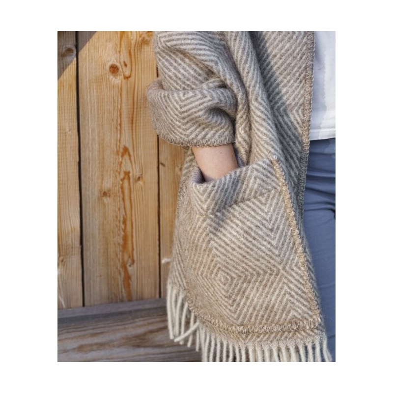 The Maria wool scarf is woven from 100% pure wool that will keep you warm whenever you need it. The delicate motif is elegant and suits both women and men. The scarf is finished with delicate fringes. In addition, the practical pockets allow you to store the necessary small items and also warm your hands.