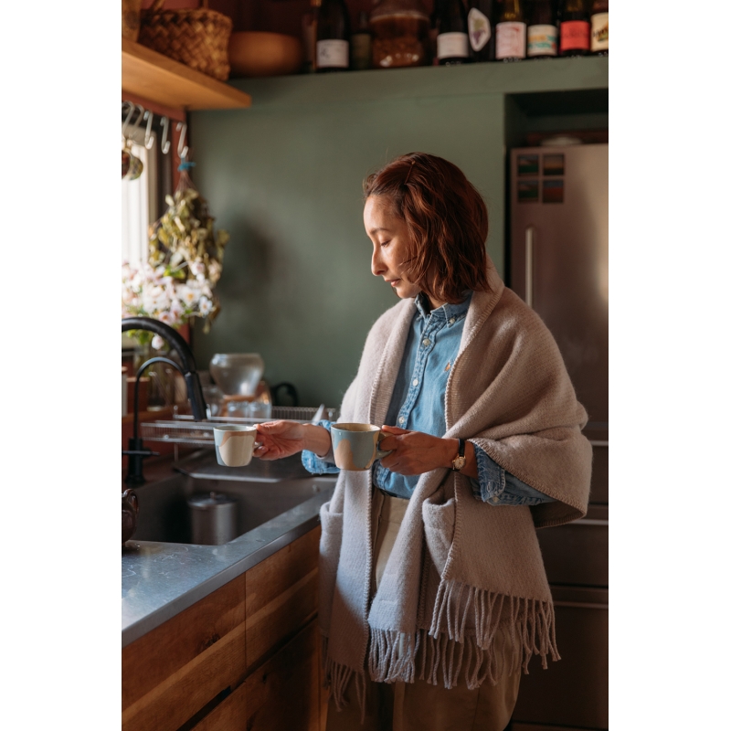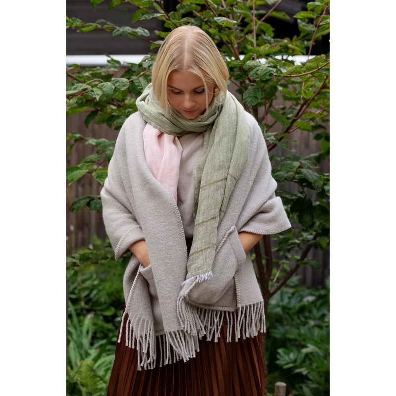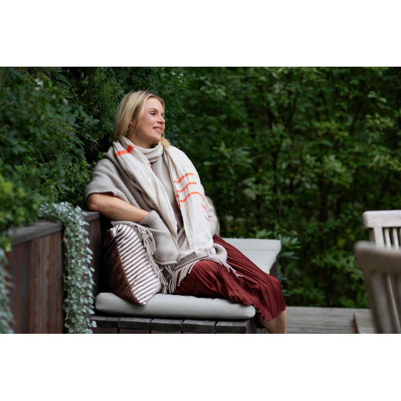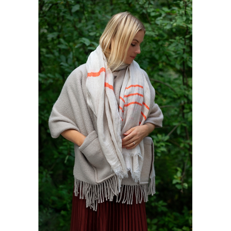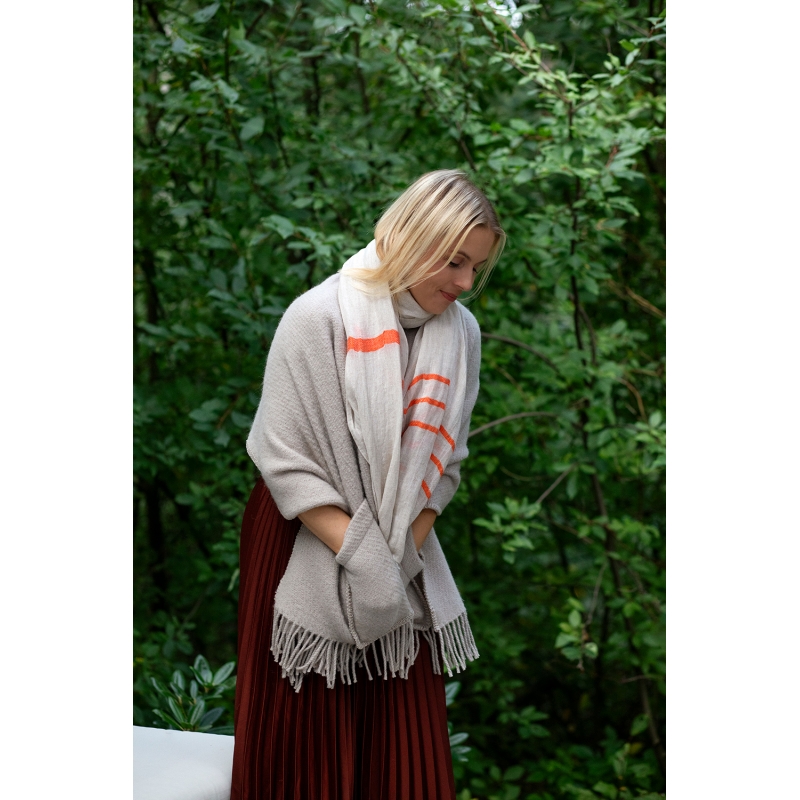 The Uni wool scarf is woven from 100% pure wool that will keep you warm whenever you need it. The soft beige shade is elegant and the scarf is perfected with delicate fringes. In addition, the practical pockets allow you to store the necessary small items and also warm your hands.