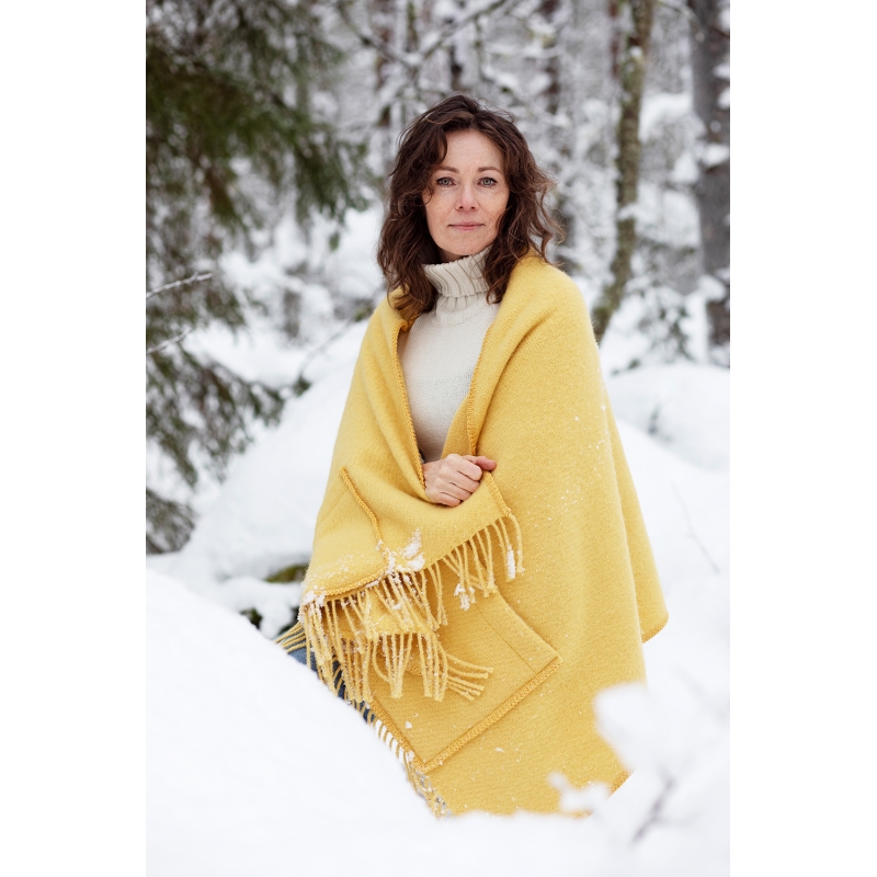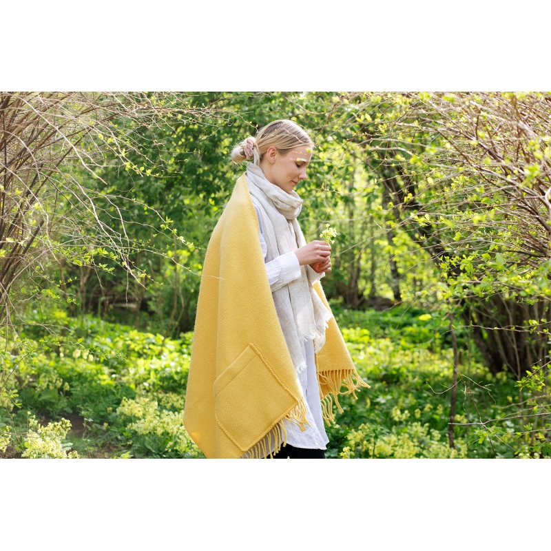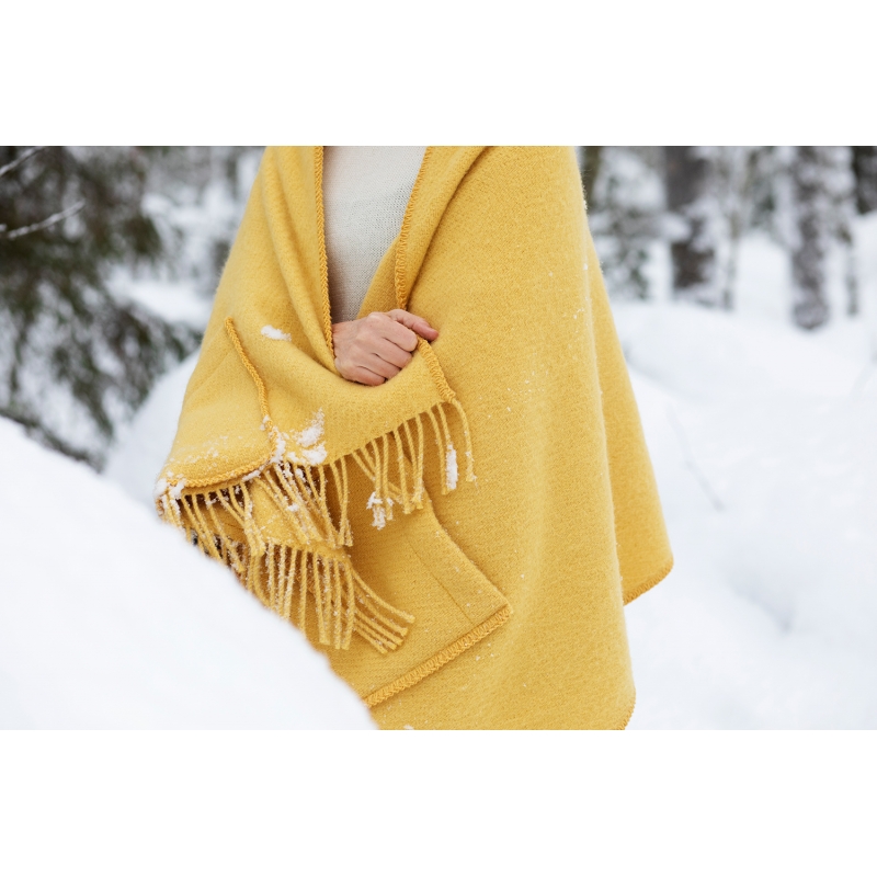 The Uni wool scarf is woven from 100% pure wool that will keep you warm whenever you need it. The fresh ochre shade is elegant and the scarf is perfected by delicate fringes. In addition, the practical pockets provide the opportunity to store the necessary small items and also warm your hands.