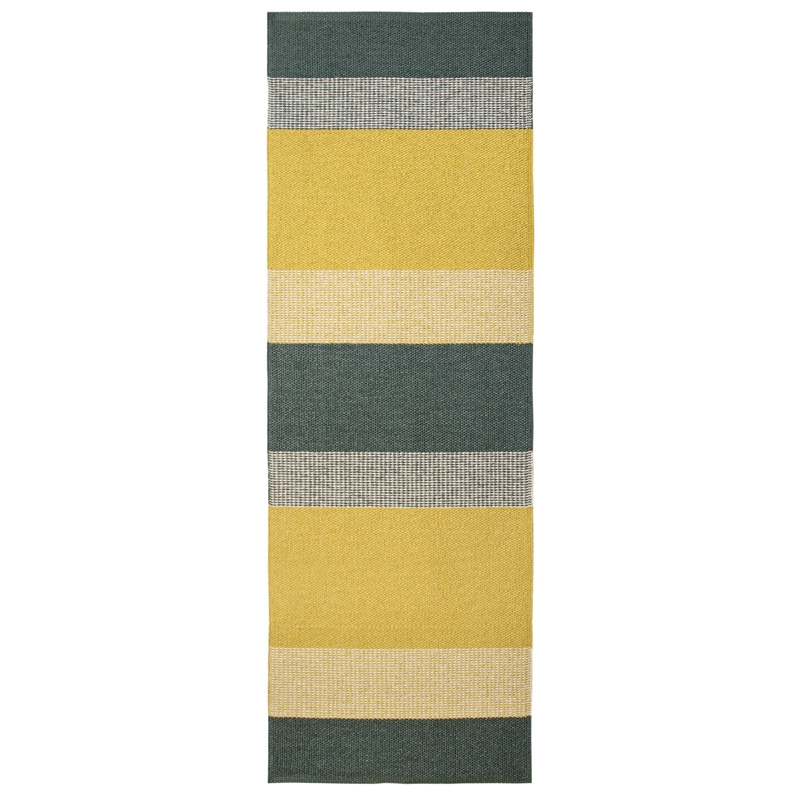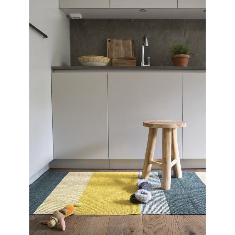 The hand-knitted Seasons piece rug in the shade Sunny is inspired by summer Scandinavia bathed in sunshine. The rug is also suitable for demanding environments, including outdoor use on a terrace or balcony. It will also work very well in the kitchen or hallway, where classic carpets suffer from moisture and frequent dirt. The vinyl foil is non-slip, durable, washable and suitable for allergy sufferers.