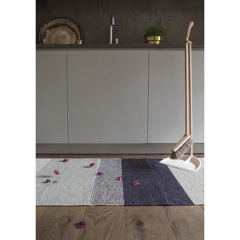 The hand-knitted Seasons piece rug in berry shade is inspired by autumn Scandinavia with forests full of blueberries. The rug is also suitable for demanding environments, including outdoor use on a terrace or balcony. It will also work very well in the kitchen or hallway, where classic carpets suffer from moisture and frequent dirt. The vinyl foil is non-slip, durable, washable and suitable for allergy sufferers.
