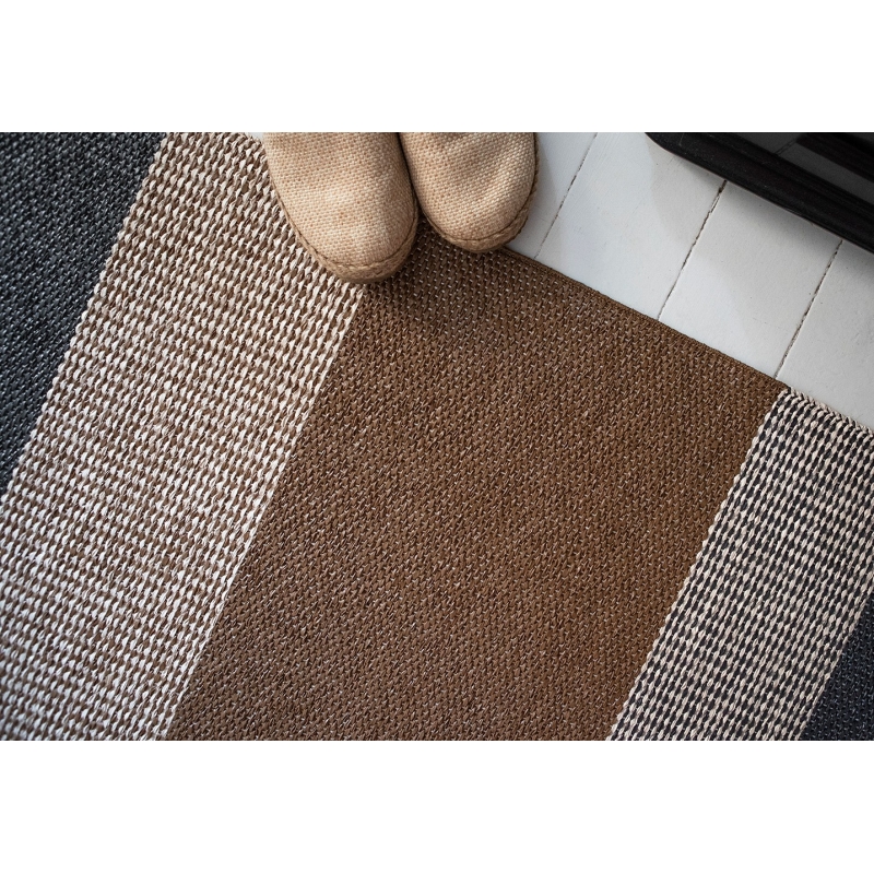 The hand-knitted Seasons piece rug in brown is inspired by the shades of lichen. The rug is also suitable for demanding environments, including outdoor use on a terrace or balcony. It will also work very well in the kitchen or hallway, where classic carpets suffer from moisture and frequent dirt. The vinyl foil is non-slip, durable, washable and suitable for allergy sufferers.