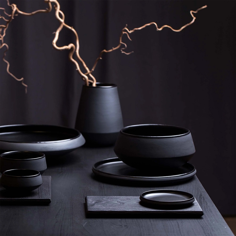 The black wooden serving board made of ash wood is handmade using the traditional Japanese Shou Sugi Ban technique in the Latvian Vaidava manufactory . Its size makes it ideal for serving delicacies, whether it is exclusive sushi, classic canapes or delicious desserts.