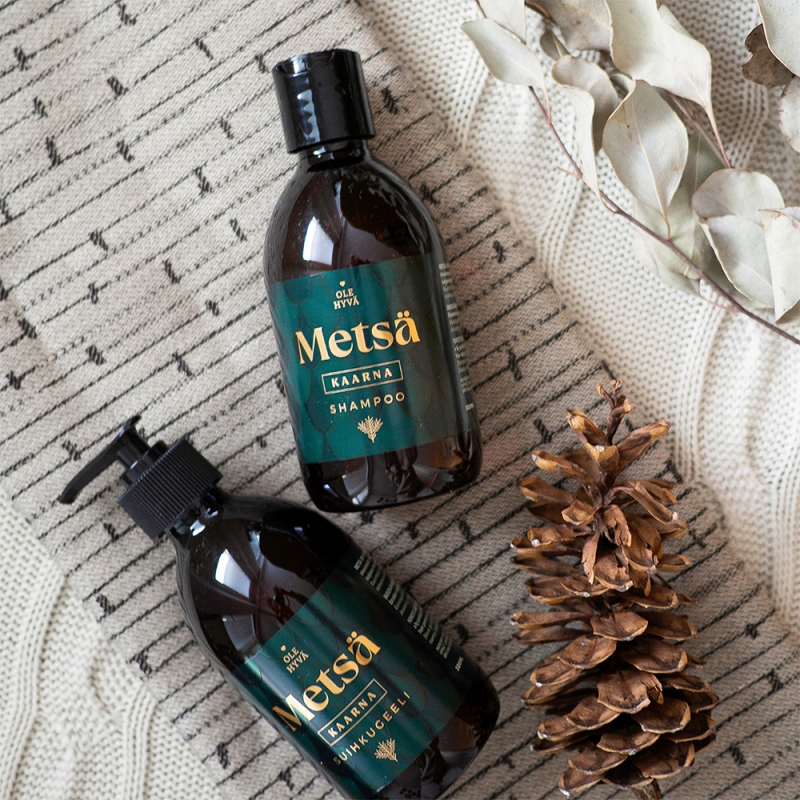 The shampoo is made in Finland using renewable resources and without unnecessary environmental impact by the Ole Hyvä brand, which focuses on eco-friendly cosmetics and plant-based cleaning products.