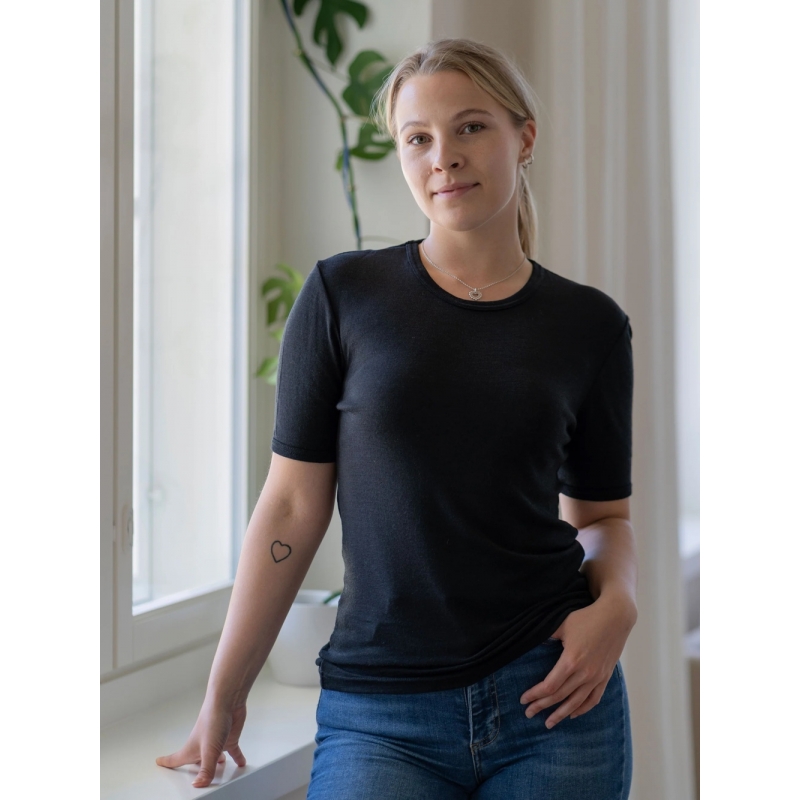 The unisex cut with flat seams, a round neckline and a reinforced hem ensures comfort even when worn all day. Production without chemical treatments and without the use of mothballs guarantees gentleness to the skin and the environment. Each piece is handmade in Artjärvi, Finland, with an emphasis on quality, sustainability and purity of natural materials.