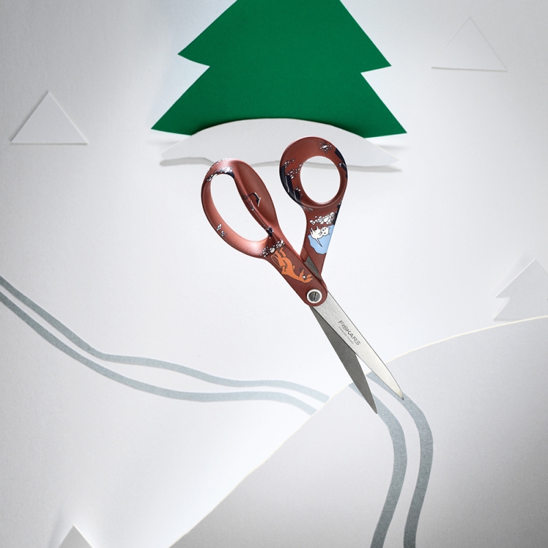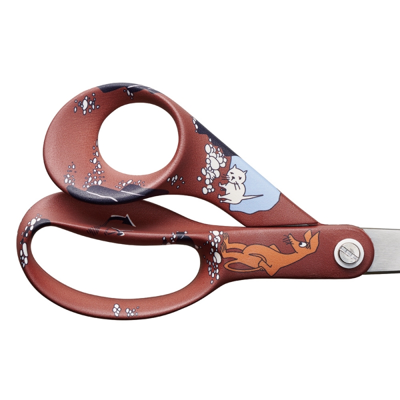 Scissors with the motif of Sniff from the Moomin stories from the Magic Valley by the famous Finnish author Tove Jansson . Scissors made of Finnish steel are practical, have great ergonomics and excel in the renowned quality that Fiskars scissors have been known for since 1967.