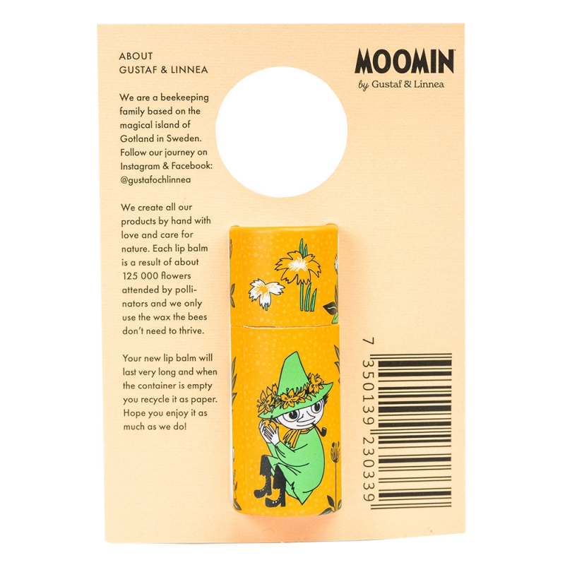 Natural lip balm with the motif of Snufkin from the popular Moomin fairy tales is made in the Swedish family company Gustaf och Linnea and combines gentle skin care with a sustainable approach to nature.