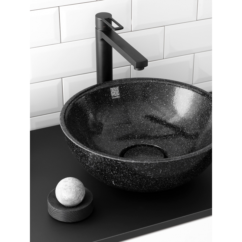 The Soft40 designer washbasin made of a natural composite of solid aspen wood and resin will give your bathroom a pleasant and peaceful atmosphere. The sophisticated yet simple timeless design lets the unique structure stand out. The innovative material directly from the Woodio workshop is impermeable, easy to maintain, 100% recyclable and the production leaves an 80% lower carbon footprint than classic ceramic washbasins. The manufacturer guarantees the quality with an extended 5-year warranty.