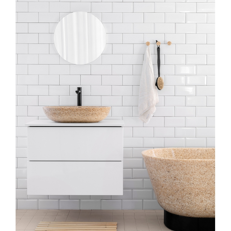 The Soft60 designer washbasin made of a natural composite of solid aspen wood and resin will give your bathroom a pleasant and peaceful atmosphere. The sophisticated yet simple timeless design lets the unique structure stand out. The innovative material directly from the Woodio workshop is impermeable, easy to maintain, 100% recyclable and the production leaves an 80% lower carbon footprint than classic ceramic washbasins . The manufacturer guarantees the quality with an extended 5-year warranty.