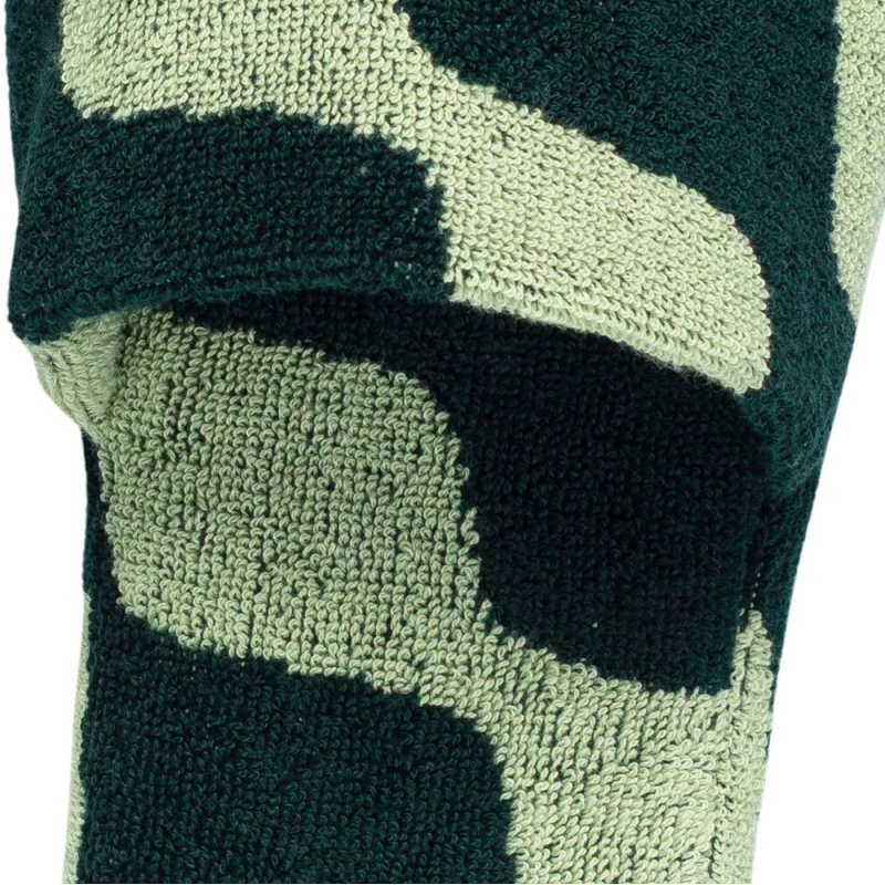 Comfortable slippers with the iconic Taifuuni pattern are made of organic cotton terry cloth and have a rubber sole for a safe and stable step. The slippers in a combination of light and dark green shades are part of the limited Marimekko collection.