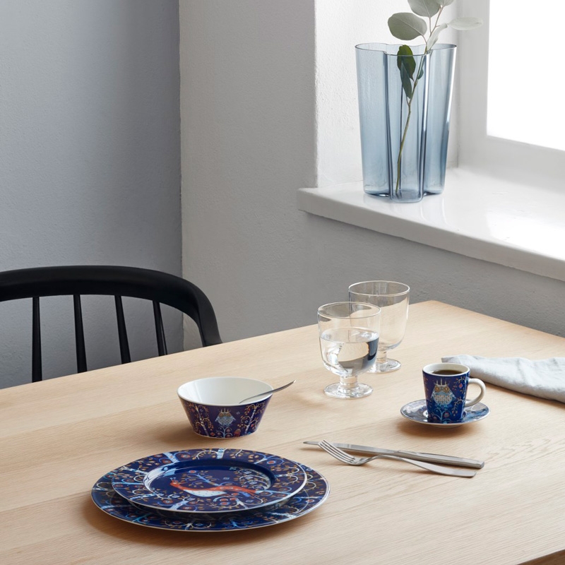 The blue porcelain bowl from the Iittala Taika collection is ideal for serving cereals, fresh fruit, desserts or compotes and you can even bake in it. Taika means magical in Finnish and designer Klaus Haapaniemi has done a fantastic job of this theme. His illustrations inspire, stimulate your imagination and they will lead you to new ideas.