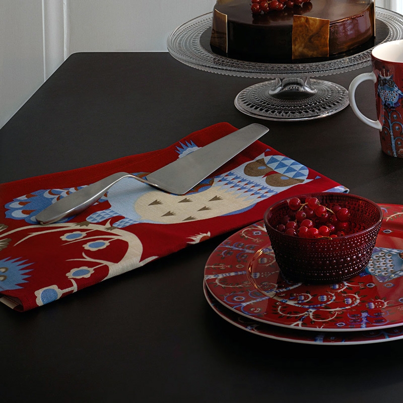 The festive red porcelain plate from the Iittala Taika collection is perfect for serving main courses. Taika means magical in Finnish, and designer Klaus Haapaniemi has done a fantastic job of capturing this theme. His illustrations will inspire, spark your imagination and lead you to new ideas.