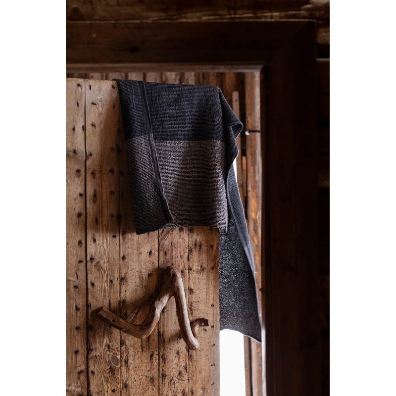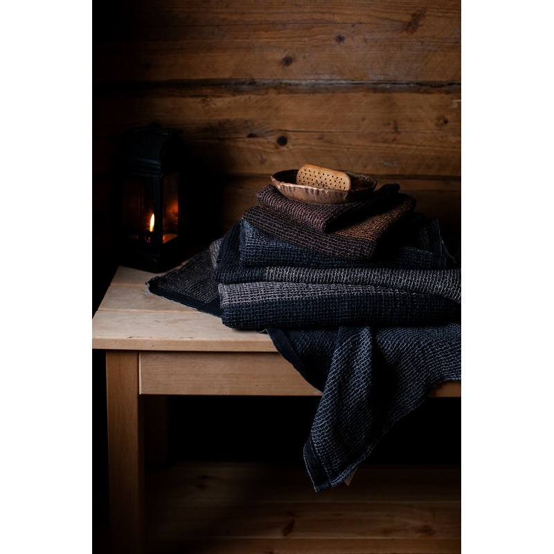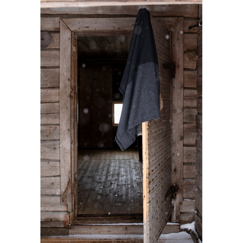 The composition of linen, tencel and cotton makes the Terva towel one of the favorite helpers in your bathroom. It is softer to the touch, dries quickly and has excellent absorbency. You will simply love the Terva towel from the first use. It is suitable not only as a classic bath towel, but also serves as a stylish kilt in the sauna. This color combination is woven from threads in black, gray and natural shades of linen.