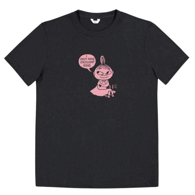 A quality T-shirt with a pink motif of Little Mia from the fairy tale Moomins by the famous Finnish author Tove Jansson. The T-shirt is responsibly sewn in Estonia from a unique recycled material. The fabric is durable, comfortable and holds its shape. No dyes or chemicals are used in its production and the production creates 50% less carbon dioxide emissions and uses 99.9% less water. The print is then applied in Finland.