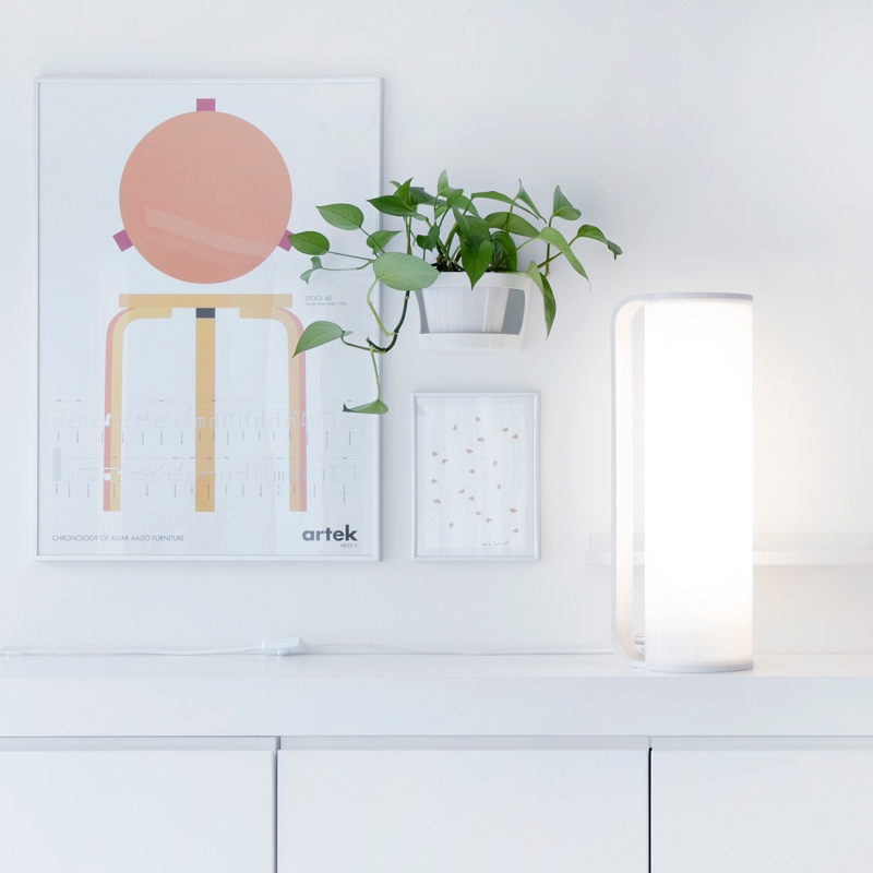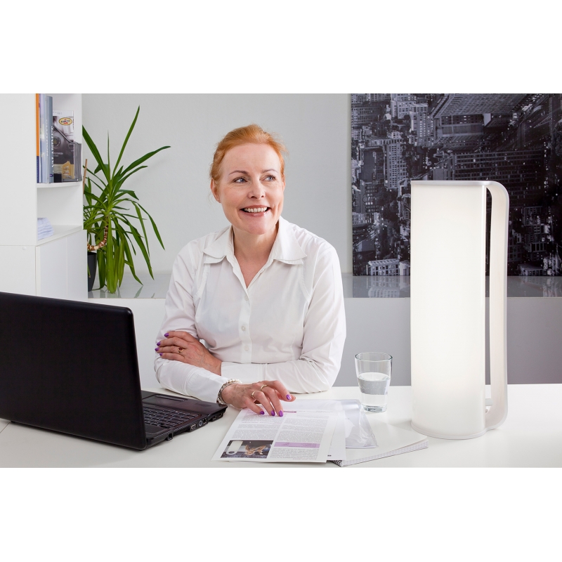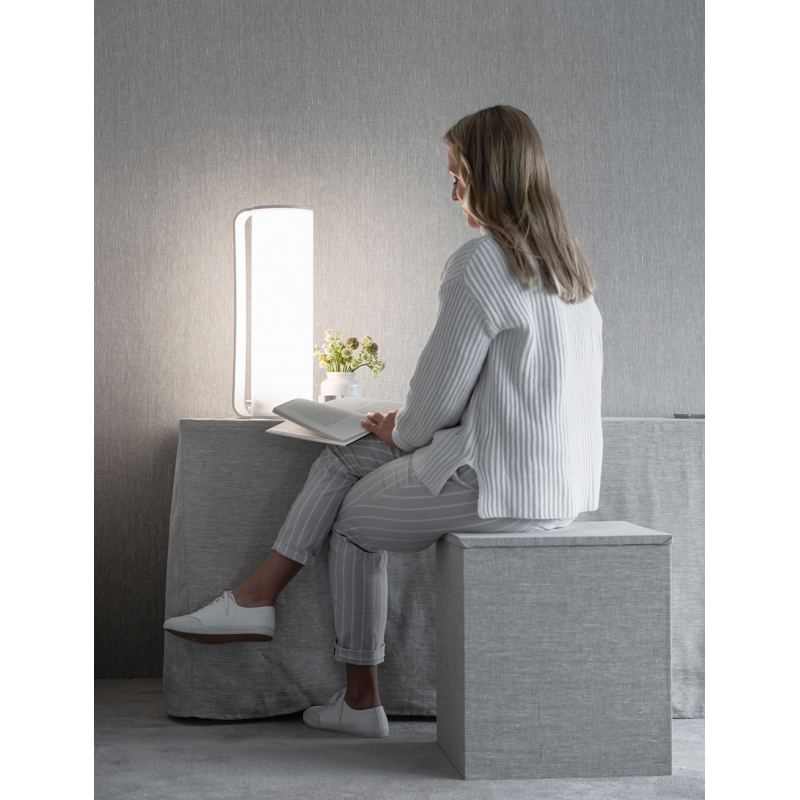 The lamp is part of the Bright Therapy collection of therapeutic lamps, which, based on scientific studies, compensate for daylight and help overcome short winter days. The lamp has a dimmer with the ability to adjust the light intensity.