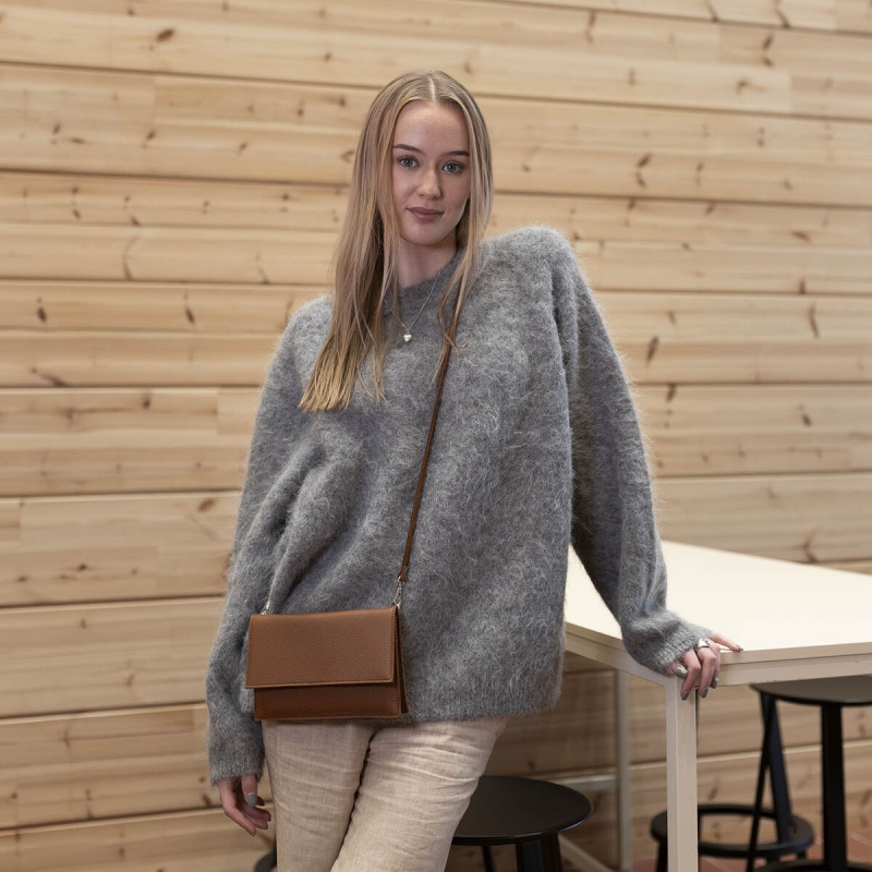 The minimalist Välke handbag made of genuine elk leather is the perfect companion for everyday and more formal outfits. Inside the handbag you will find two spacious compartments with a smaller pocket between them, which makes it easier to organize things. It can fit your mobile phone, wallet, keys and other small items. The handbag fastens with a zipper and inside there are two compartments separated by another pocket.