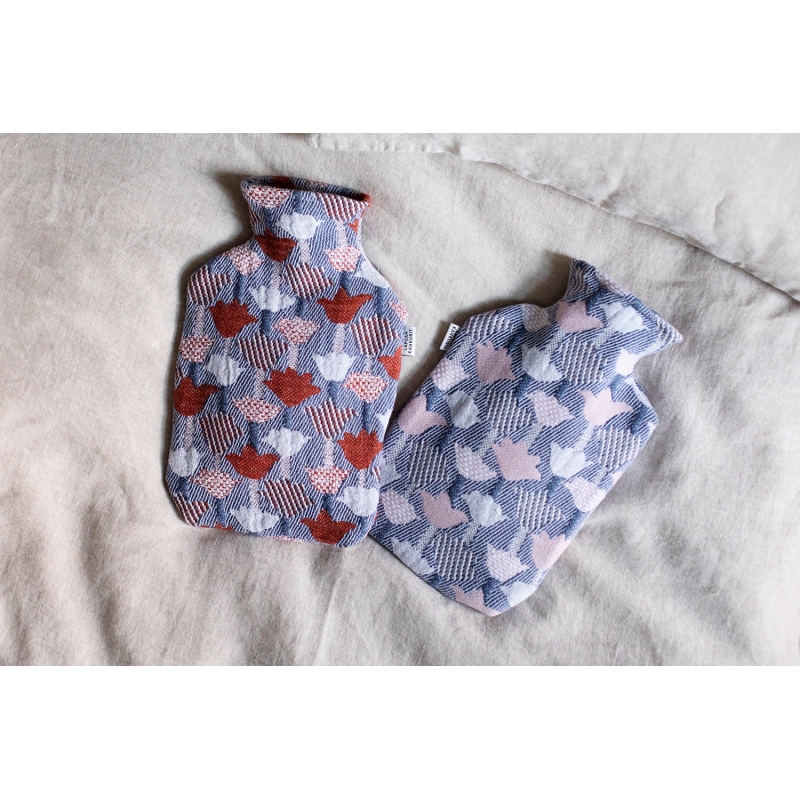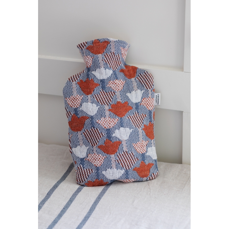 Tulppaani hot water bottle, cinnamon-blue