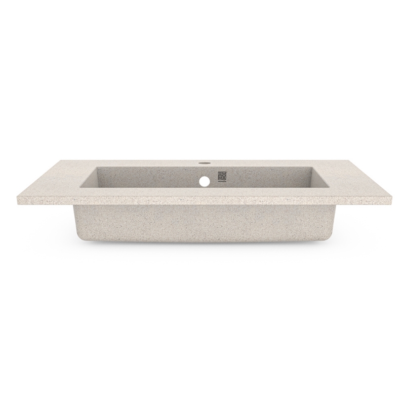 The size of the washbasin is ideal for a bathroom or toilet, not only in homes, but also in commercial spaces. This model is designed to be integrated into a cabinet, has an overflow and a tap hole that sits in the middle. In everyday use, the Unit80 washbasin functions as a countertop and built-in washbasin, which also provides space for small cosmetics. The one-piece integrated washbasin creates a sleek and modern look in the bathroom. The washbasin has been designed in standard dimensions that fit most bathroom cabinet frames on the market. The shade of white is light cream and the surface is glossy.