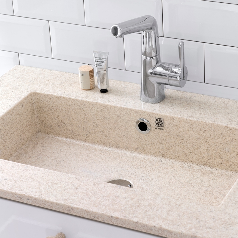 The Unit80 designer rectangular washbasin made of a natural composite of solid aspen wood and resin will give your bathroom a pleasant and peaceful atmosphere. The sophisticated yet simple timeless design lets the unique structure stand out. The innovative material directly from the Woodio workshop is impermeable, easy to maintain, 100% recyclable and the production leaves an 80% lower carbon footprint than classic ceramic washbasins . The manufacturer guarantees the quality with an extended 5-year warranty.