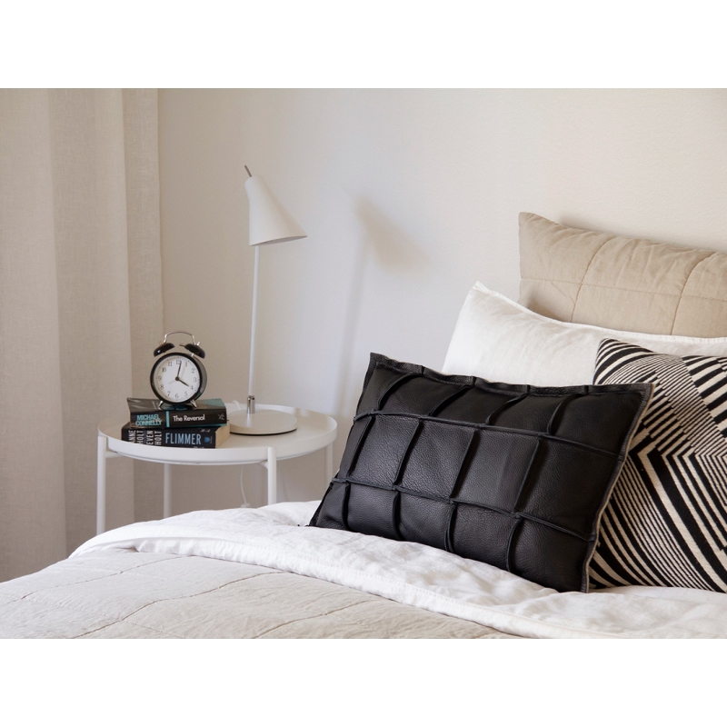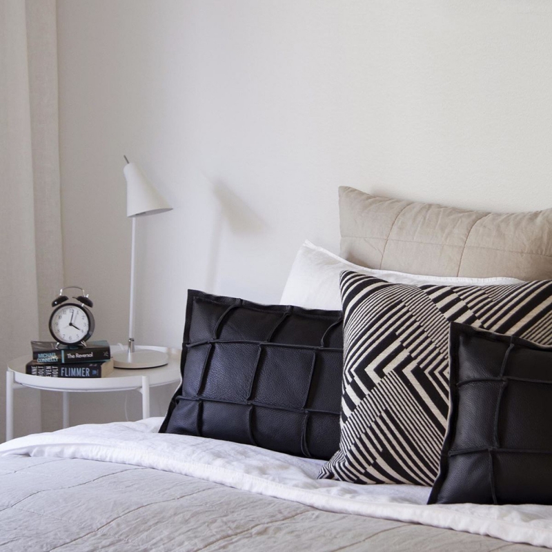 Vacuum the pillow regularly, ventilate it in the fresh air or in the cold. We recommend using leather care products, and you can scent the wool side with Sees fresh natural textile spray .