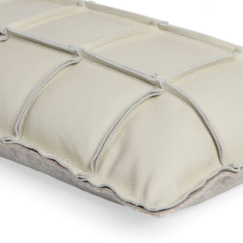 The exclusive Väre leather cushion in a soft, putty shade will pamper you with soft and comfortable genuine leather and high-quality wool felt on the reverse. The warmth of wool combined with the elegance of leather creates a unique and pleasant design piece for your living room, bedroom, study or office. The cushion is sewn from sustainable natural materials directly in Finland and comes with filling.