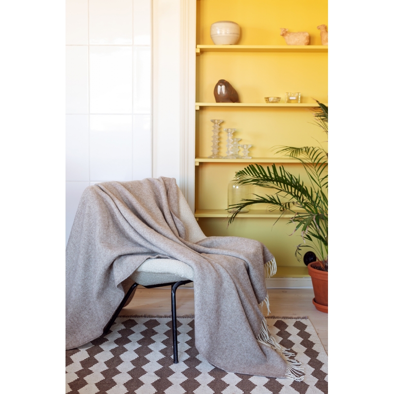 The Arvo wool blanket is woven in Finland from premium Finnish Finnsheep wool combined with certified New Zealand wool. The natural beige shade with fringes is suitable for any occasion and will serve you well all year round.