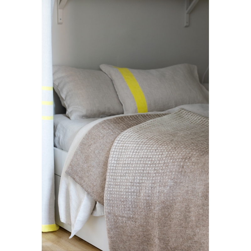 The Juhannus (summer solstice in Finnish) wool blanket is woven in Finland from premium Finnish Finnsheep wool combined with certified New Zealand wool. Designer Hanna Galtat was inspired by the increasing and decreasing intensity of daylight before and after the summer solstice. The natural beige shade will complement and cosily complement your home.