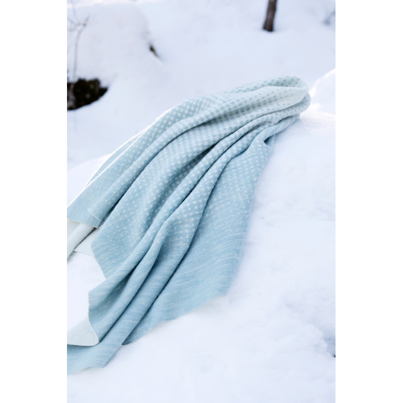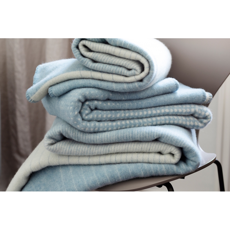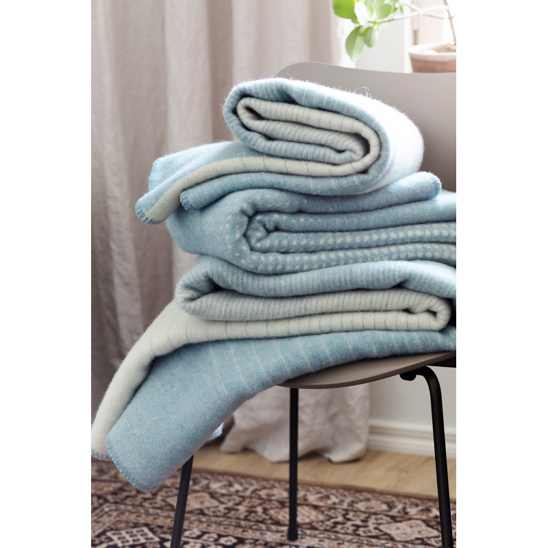 The Juhannus (summer solstice in Finnish) wool blanket is woven in Finland from premium Finnish Finnsheep wool combined with certified New Zealand wool. Designer Hanna Galtat was inspired by the increasing and decreasing intensity of daylight before and after the summer solstice. The wool fiber of this blanket is dyed with a vegetable dye obtained from borate dye. The natural blue shade will complement and cozy your home.