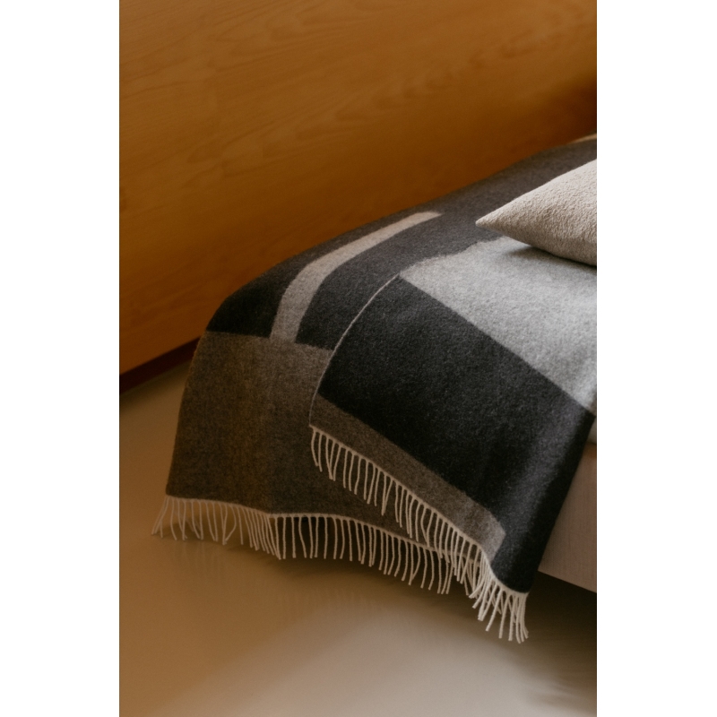 The Suunta wool blanket is woven in Finland from premium Finnish Finnsheep wool combined with certified New Zealand wool. The Suunta motif has almost architectural regular shapes. The rectangles and clean lines give the blanket an elegant, structured and timeless look.