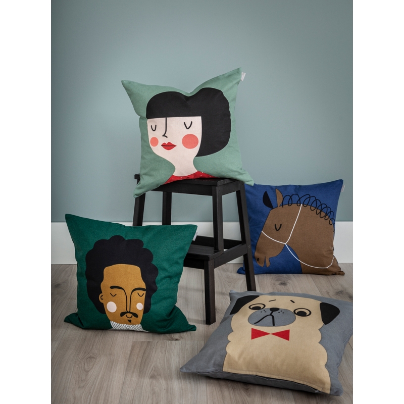 The Swedish designer from Piteå likes to draw at the kitchen table in her cottage, looking out at the horizon. Her style is described as playful, witty and retro. Her favorite subjects are faces and people. She finds inspiration in music, good food and her sons' imaginative drawings.
