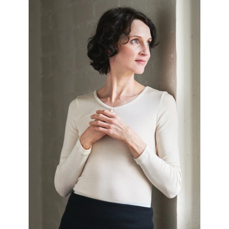 Dámske tričko z jemnej zmesi organickej merino vlny a prírodného hodvábu poskytuje výnimočný komfort po celý rok - v lete príjemne chladí, v zime spoľahlivo zahreje. Ľahký, priedušný úplet sa prirodzene prispôsobí telu, dobre odvádza vlhkosť a zostáva suchý na dotyk aj pri premenlivých teplotách. Vďaka svojej jemnosti je tričko ideálne ako prvá vrstva na bežné nosenie, do prírody, na chvíle odpočinku aj ako pyžamo. Tričko nie je farbené a má prírodný biely odtieň bavlny.