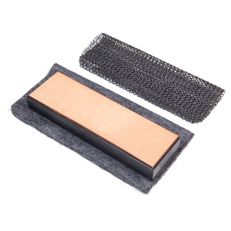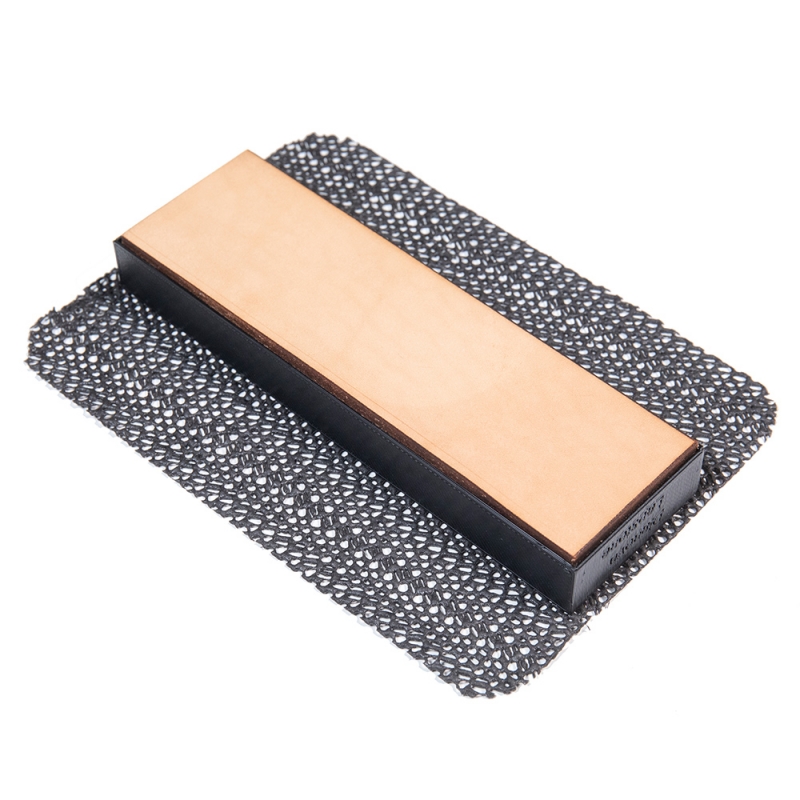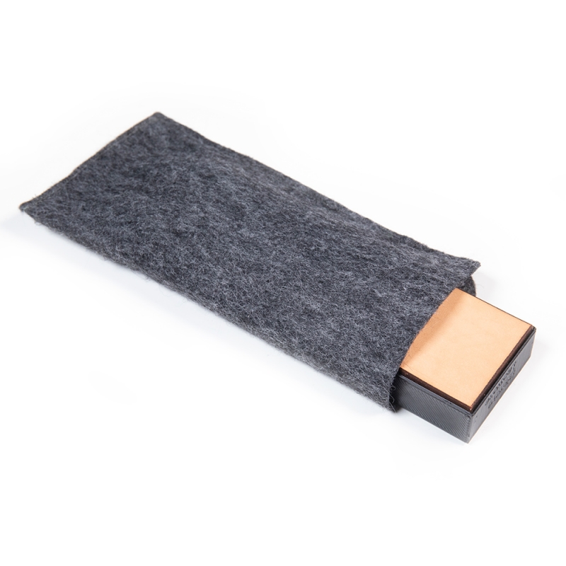 Brusná plocha s monokryštalickými diamantmi najvyššej kvality (1200 grit), leštiaca plocha z pravej kože, protišmyková podložka a textilné púzdro