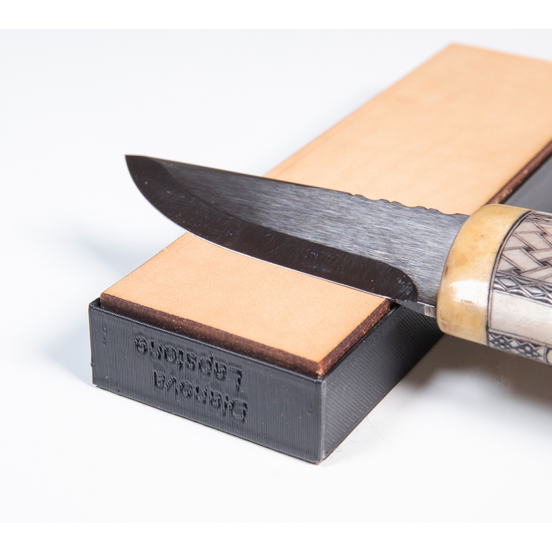 Švédsky obojstranný diamantový brúsny kameň na precízne brúsenie nožov má na jednej strane veľmi jemnú diamantovú brúsnu plochu a na druhej kožu na odstránenie štiepenia a doleštenie čepele k dokonalosti. Veľkosť a hmotnosť je tak akurát na použitie na pracovnej doske aj pre pohodlné ostrenie nožov a sekier v ruke. Súčasťou balenia je aj protišmyková podložka a praktický obal. Brúsny kameň odporúčame mať po ruke v kuchyni alebo dielni, kde sa vám bude dobre a dlho starať o vaše nože.
