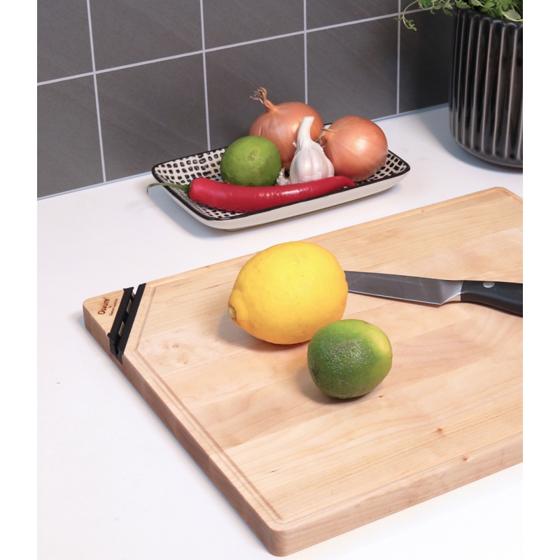 Švédska doska z masívnej brezy s integrovaným diamantovým brúskom je neoceniteľným pomocníkom v každej kuchyni. Robustná drevená doska je dostatočne veľká pre pohodlné krájanie. V jednom z rohov je potom šikovne zapustená diamantová brúska a stačí teda niekoľko ťahov a váš nôž bude vždy precízne ostrý.