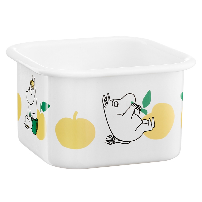 Dóza s vrchnákom Moomin Joyful Apples 1l, smalt / bielo-žltá