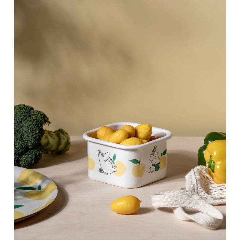 Praktická smaltovaná dóza z kolekcie Joyful Apples vnesie do vášho domova sviežu a hravú atmosféru Muminkov pri zbere jabĺk. Ilustrácia s Muminkom a jeho priateľmi a žltými jabĺčkami dodá radostný nádych každému dňu.
